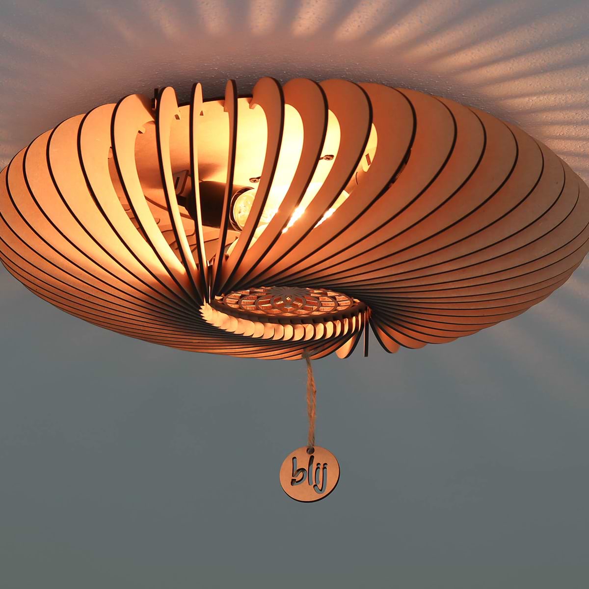 Houten plafondlamp, scandinavisch design, Swan, 48cm, Naturel hout, BLIJ DESIGN