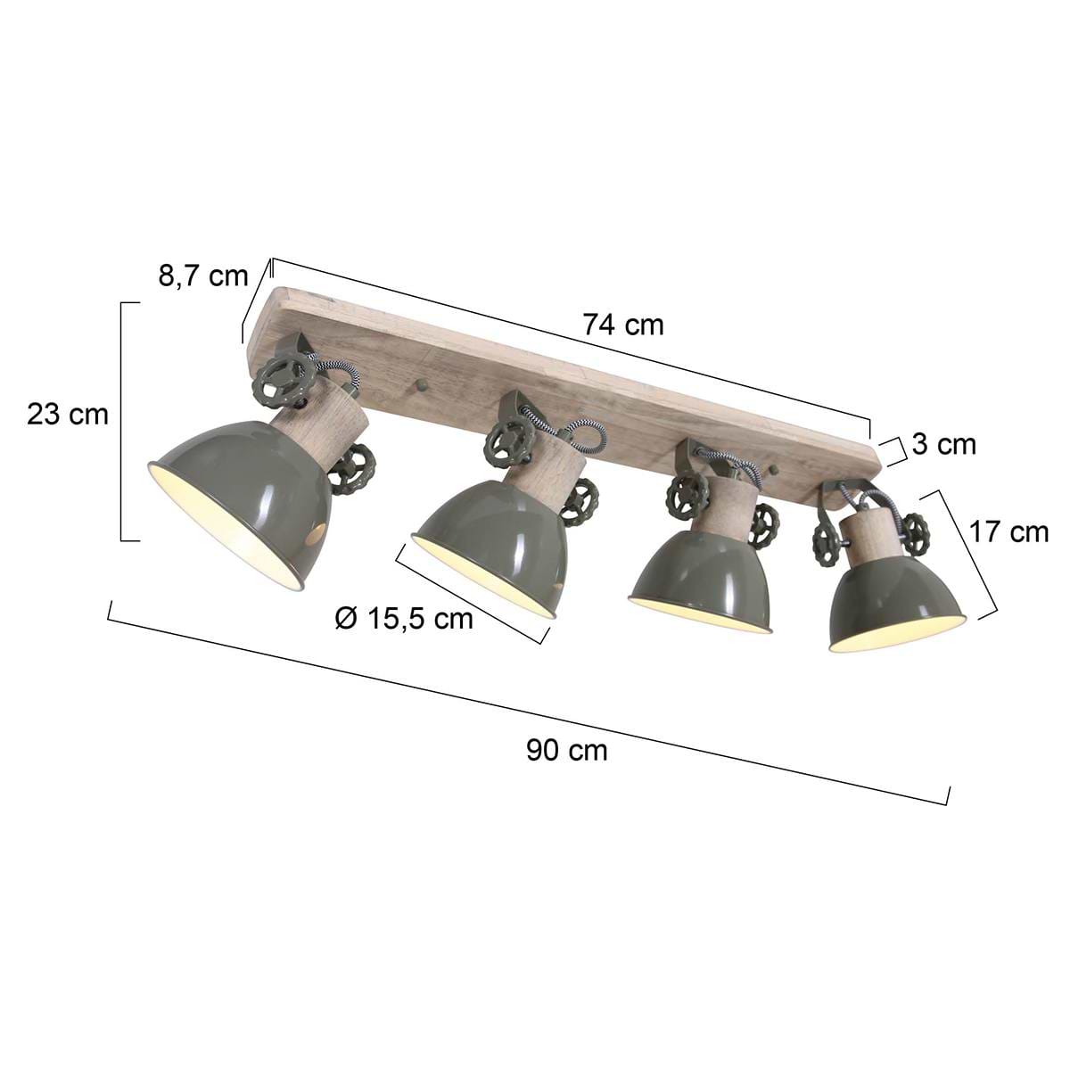 Plafondlamp, wandlamp, spot 4-lichts E27, groen en hout, Gearwood, Mexlite
