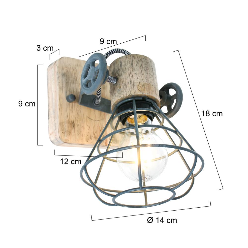Spot 1-lichts E27, grijs en hout, Guersey, Anne light & home