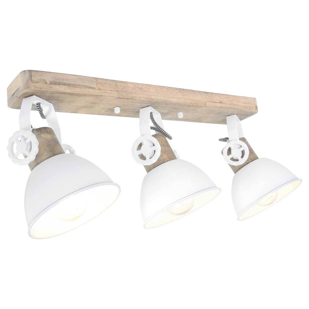 Spot 3-lichts E27, wit en hout, Gearwood, Mexlite