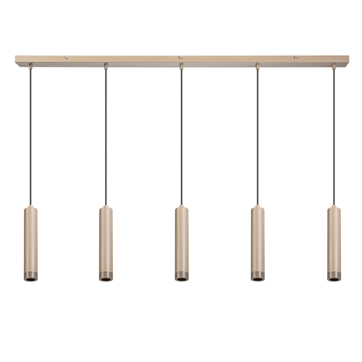 Strakke buis hanglamp Miller, zandkleurig, 5-lichts – ETH 05-HL4363-59
