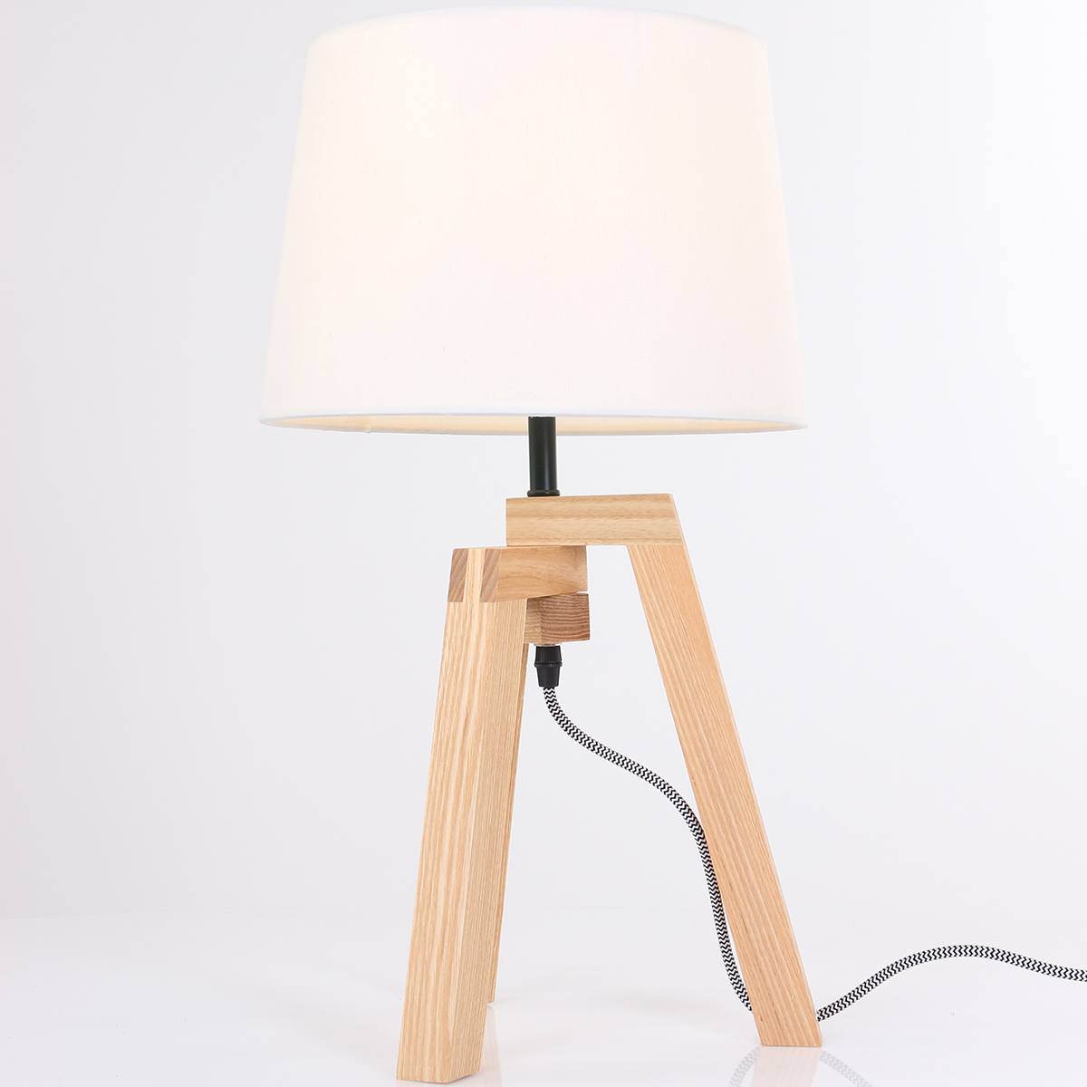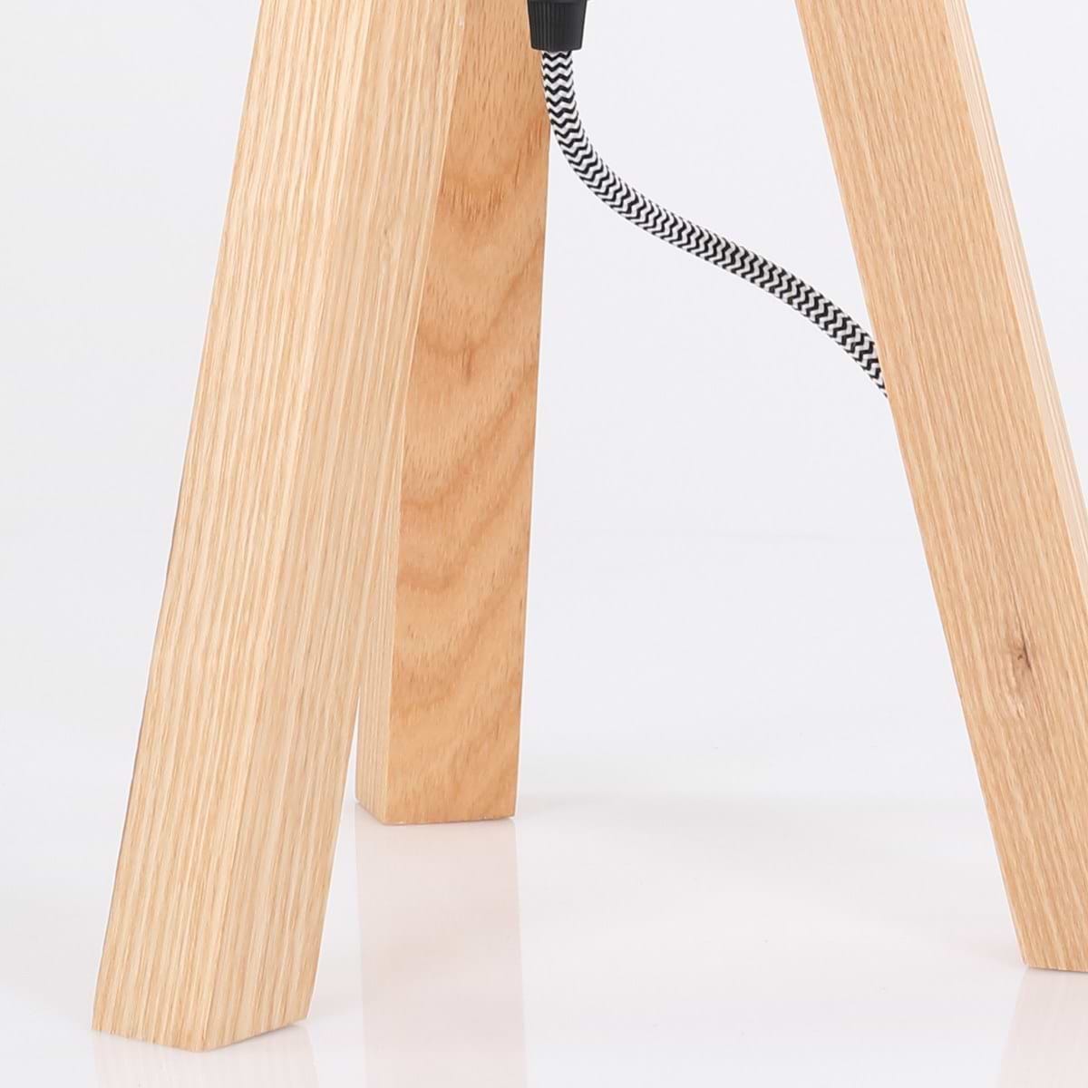 Tafellamp 1-lichts 3-poot MEXLITE, 7662BE, Tafellamp- Mexlite- Bess- Modern, Trendy- Wit Bruin Witte kap- houten frame- zwart/wit snoer- Metaal Hout