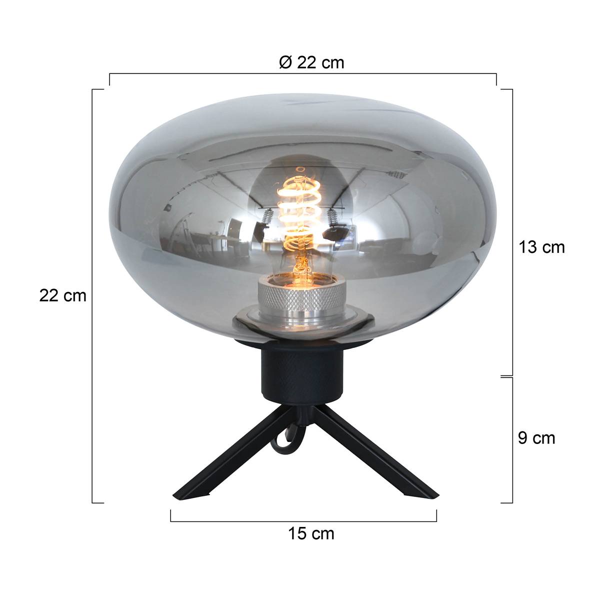 Tafellamp 1-lichts glas, zwart en grijs, Reflexion, Steinhauer