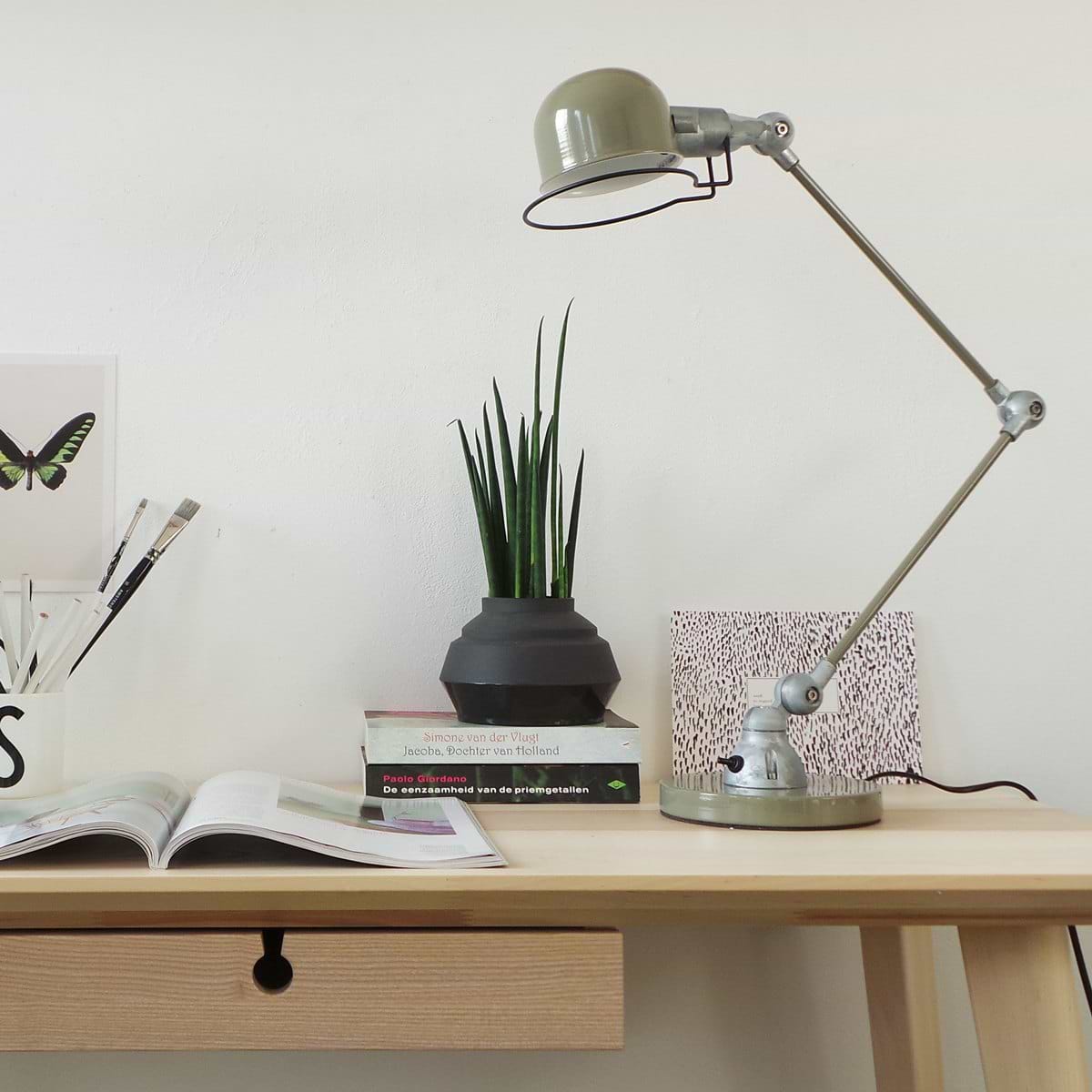 Tafellamp 1-lichts reflector, groen en aliminium, industrieel, Davin, Mexlite