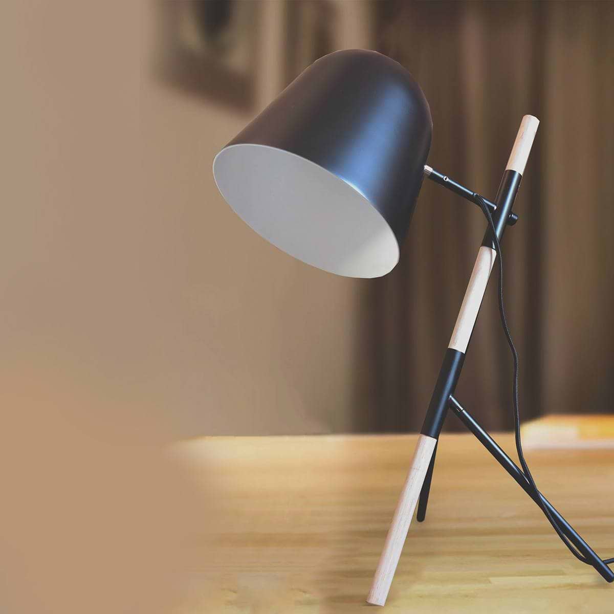 Tafellamp, bureaulamp, leeslamp, zwart 1-lichts “Sensa” 54cm hoogte, kap 20x20cm snoerschakelaar E27, ART DELIGHT
