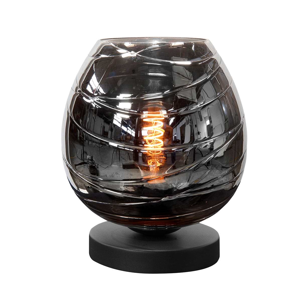 Tafellamp Fantasy Apple, 25 cm hoog, Mat Zwart, incl. glas Smoke diameter 21 cm, Serie Fantasy Apple, inclusief snoerschakelaar, dimbaar, High Light