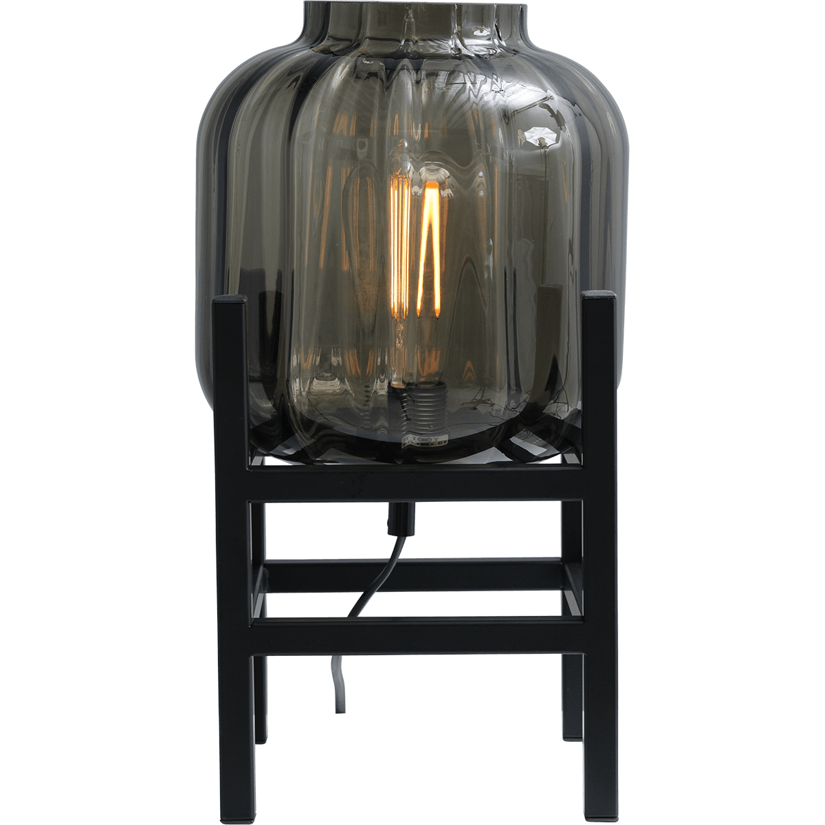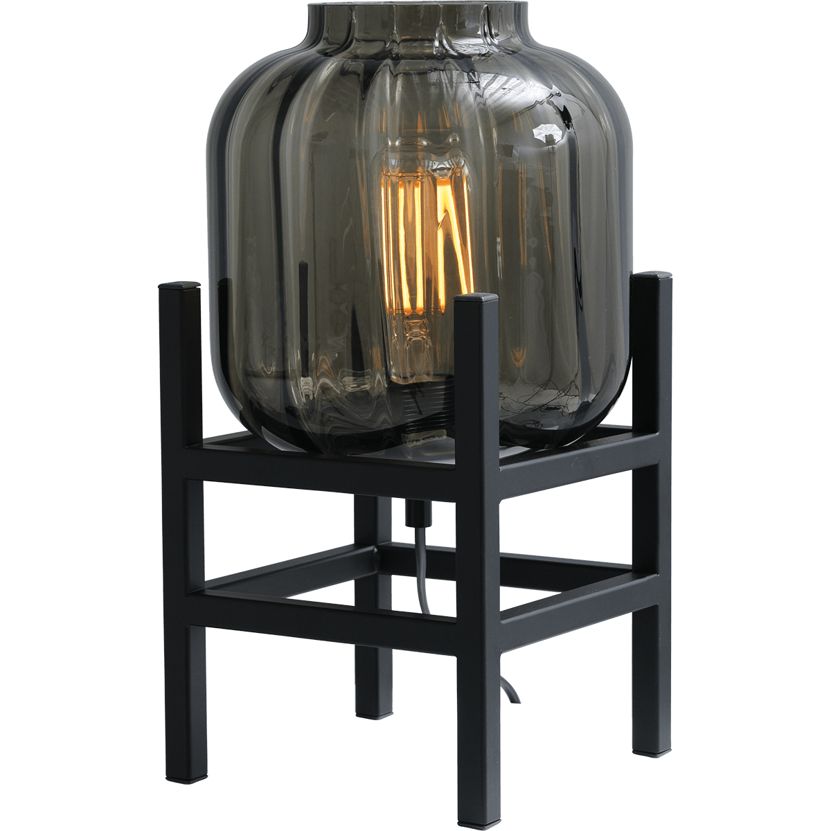 Tafellamp “Lett Rib” zwart hoogte 25cm 20,5×20,5cm, zwart rookglas, MASTERLIGHT