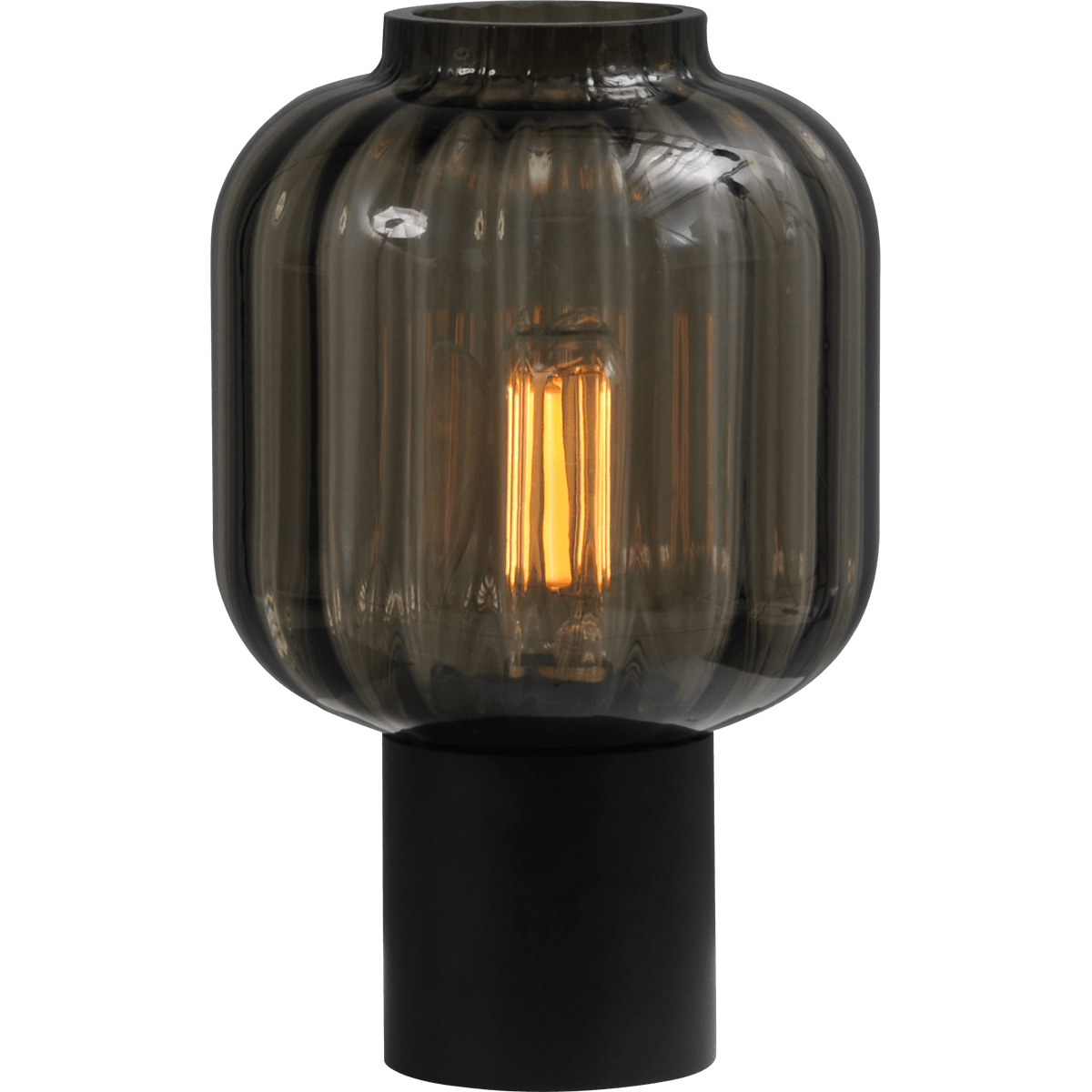 Tafellamp “Lett Rib” zwart hoogte 31cm, zwart rookglas, MASTERLIGHT