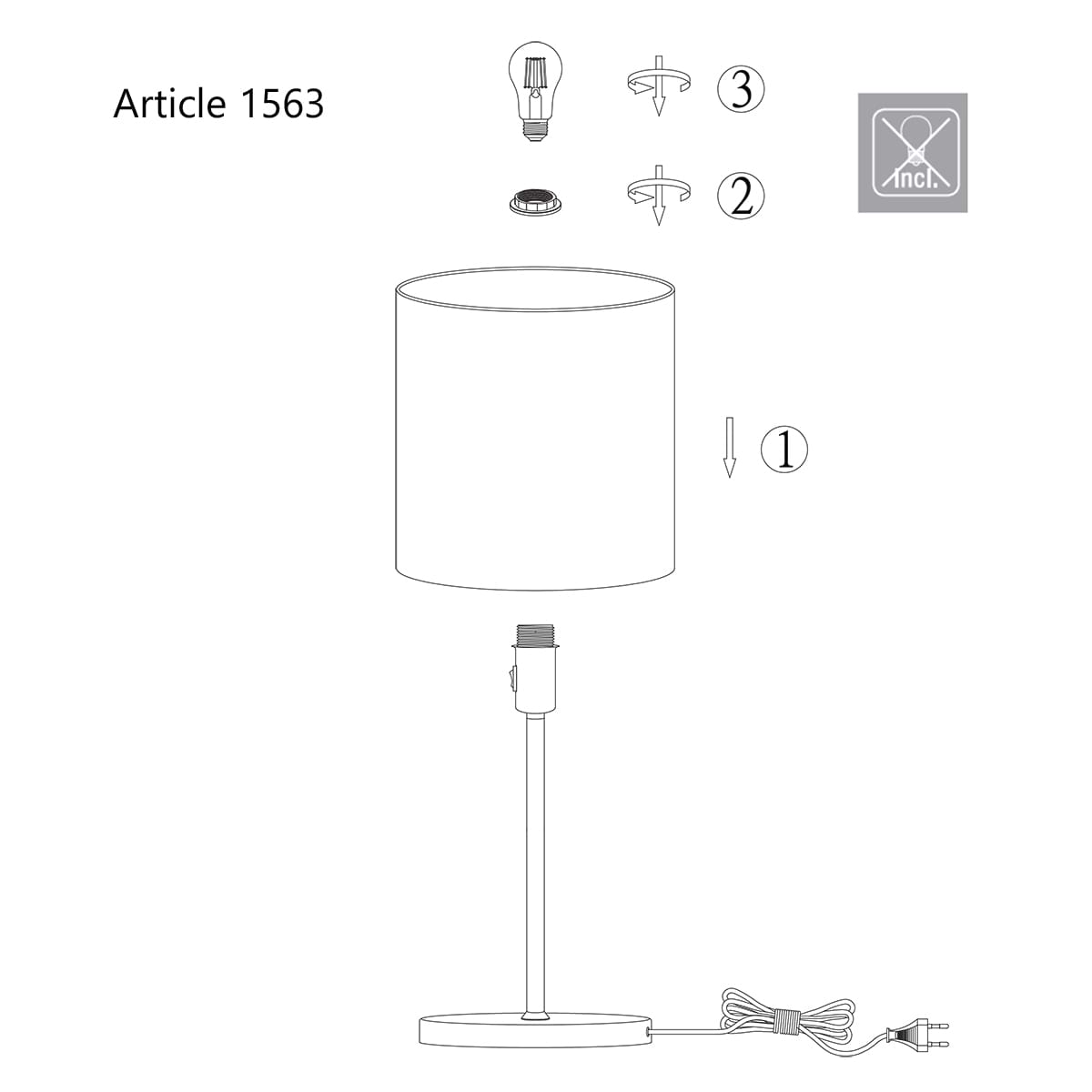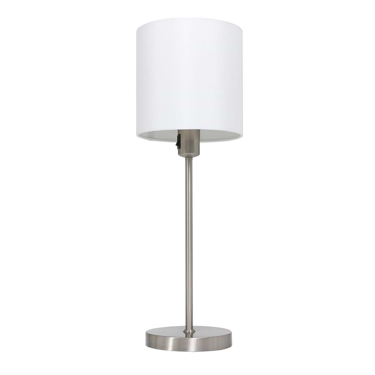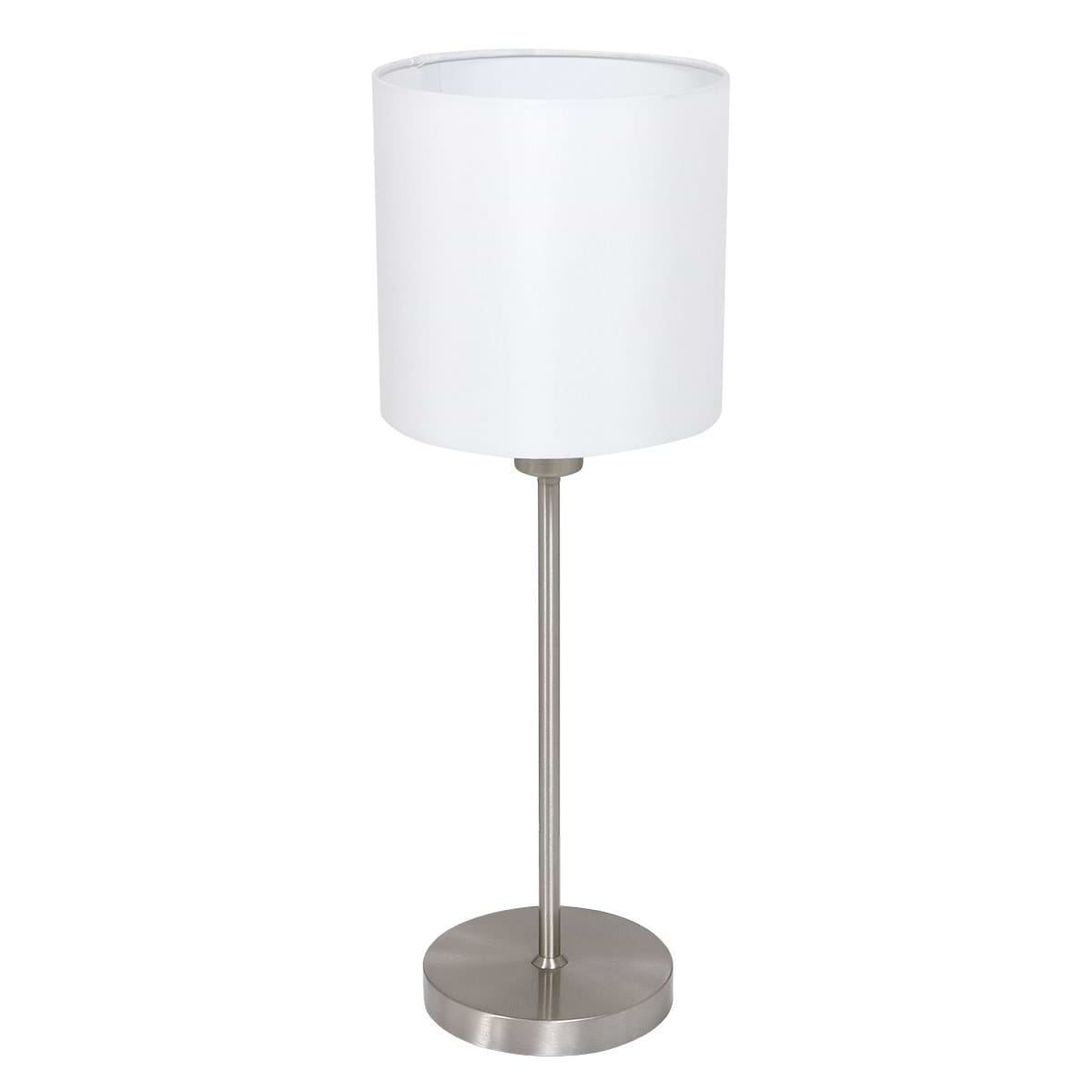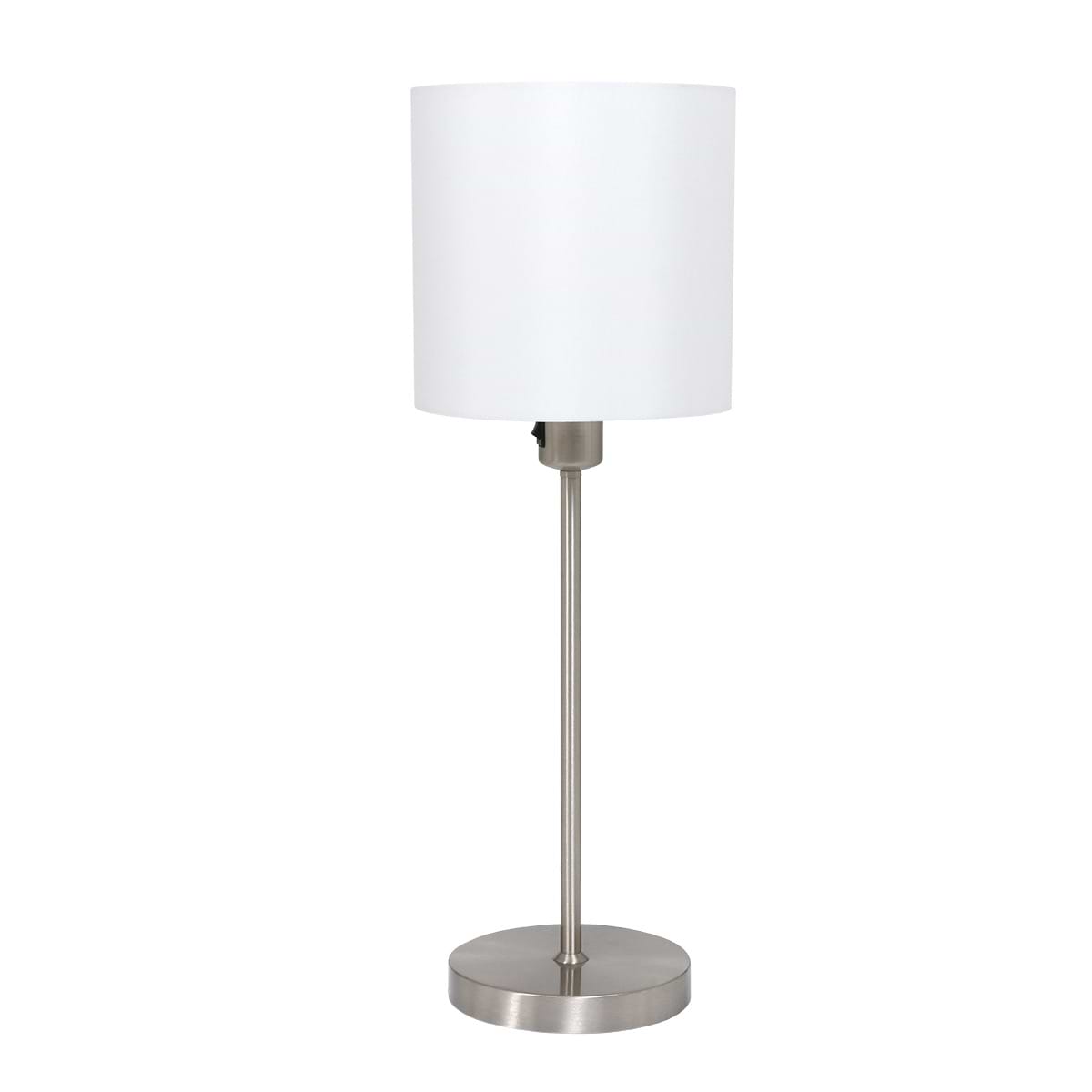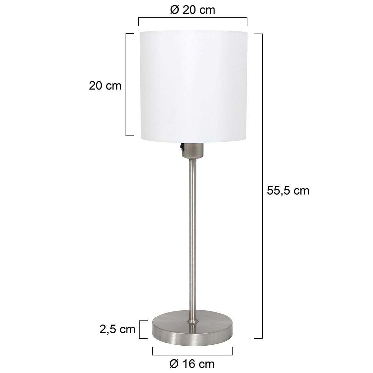 Tafellamp, staal inclusief witte linnen kap, 56 cm hoog, Noor, 1562ST, Mexlite. De lamp is te bedienen met een schakelaar op het armatuur.