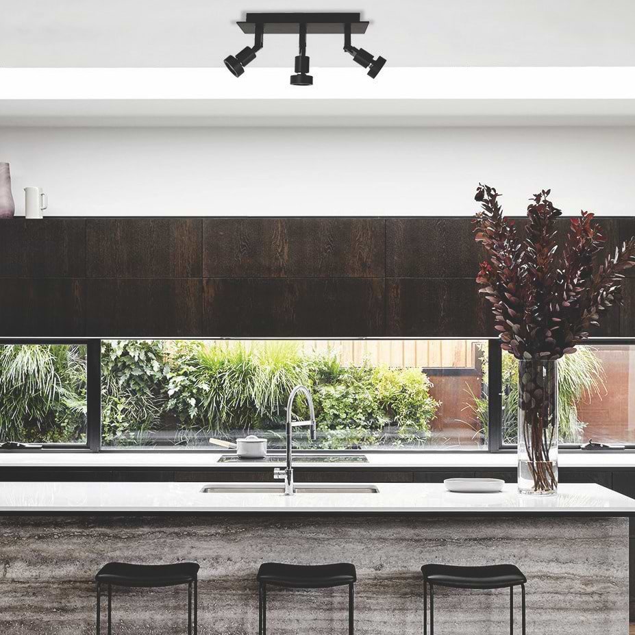 Technische plafondlamp met drie verstelbare spots, industriële opbouwspots, zwart 3-lichts “Tech” 34x10cm excl GU10 50W, ART DELIGHT