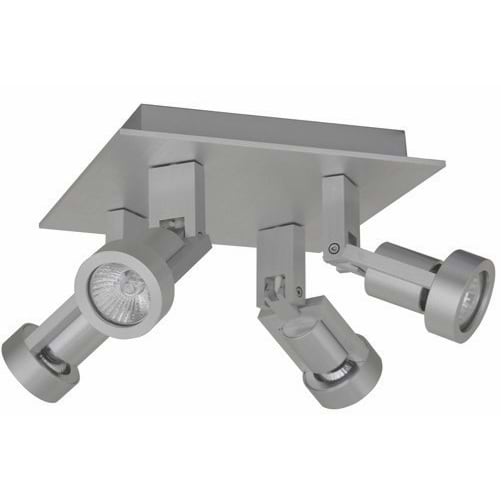 Technische plafondlamp met vier verstelbare spots, industriële opbouwspots, alu 4-lichts “Tech” 23x23cm excl GU10 50W, ART DELIGHT