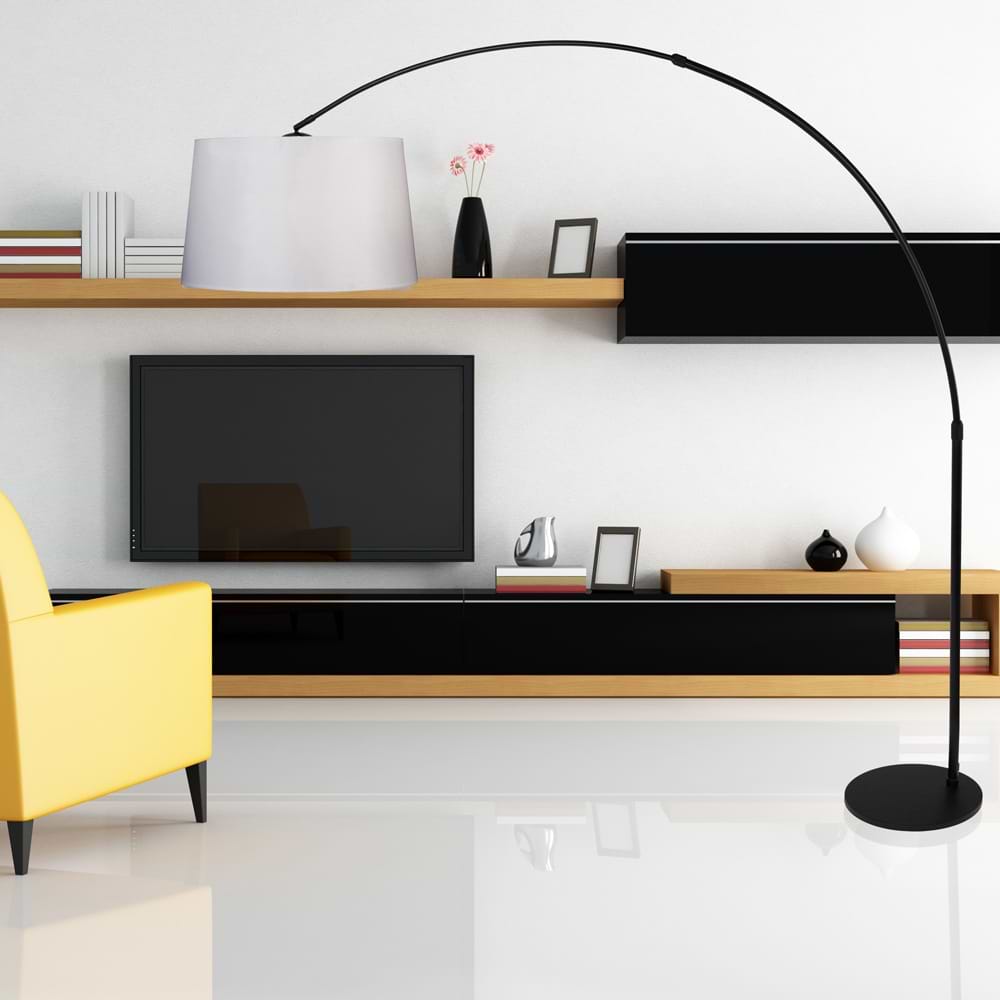 Vloerlamp 1-lichts boog (armatuur) 7268+Kap 50*50*20 rond Be27 grijs linnen, STEINHAUER