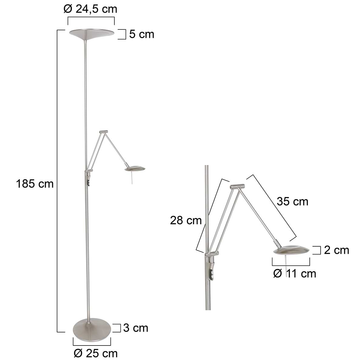Vloerlamp 2-lichts LED leesarm knik, staal en wit, Zodiac LED, Steinhauer