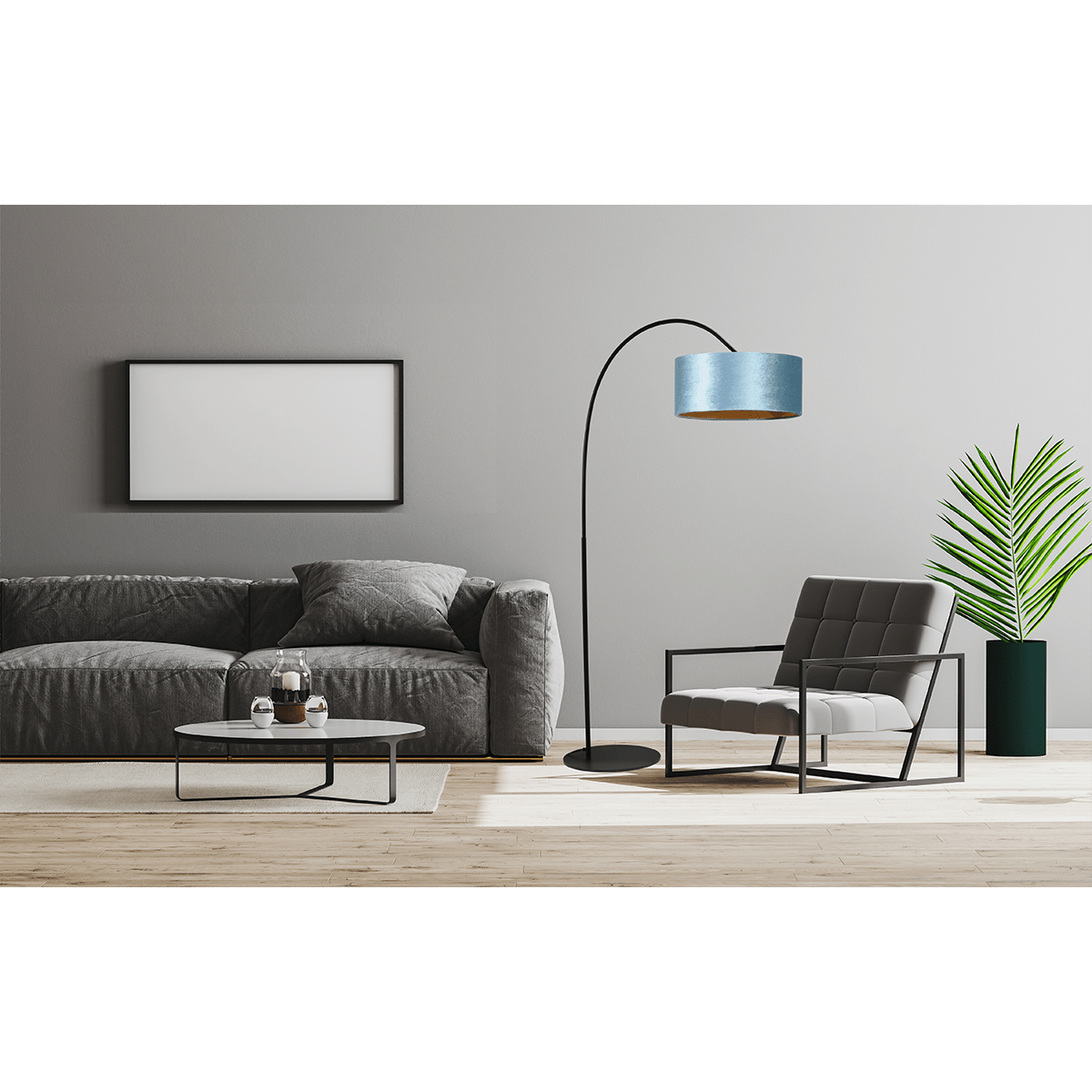 Vloerlamp Arch black, mat zwart, hoogte 183 cm, breedte 88 cm inclusief blauwe lampenkap, MASTERLIGHT
