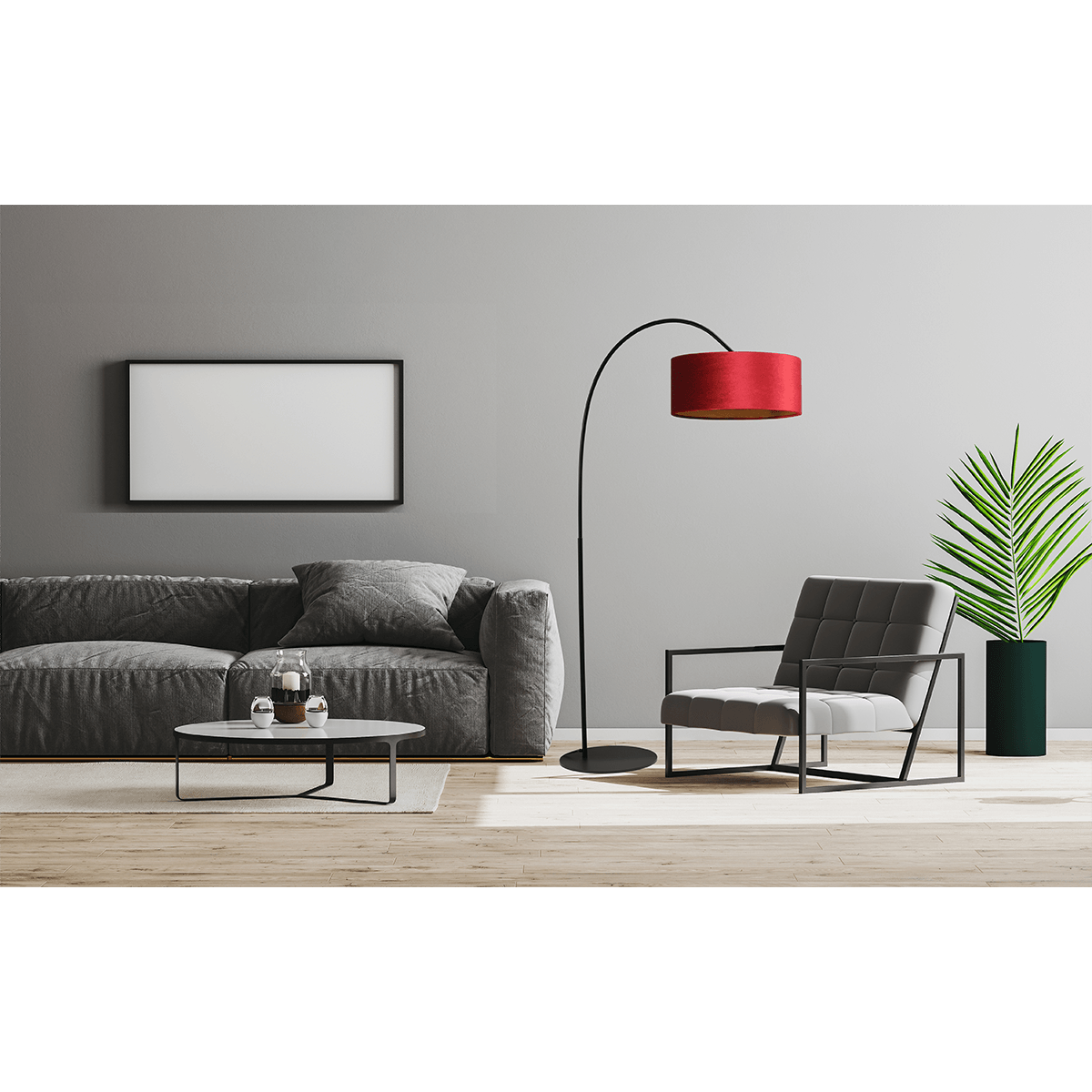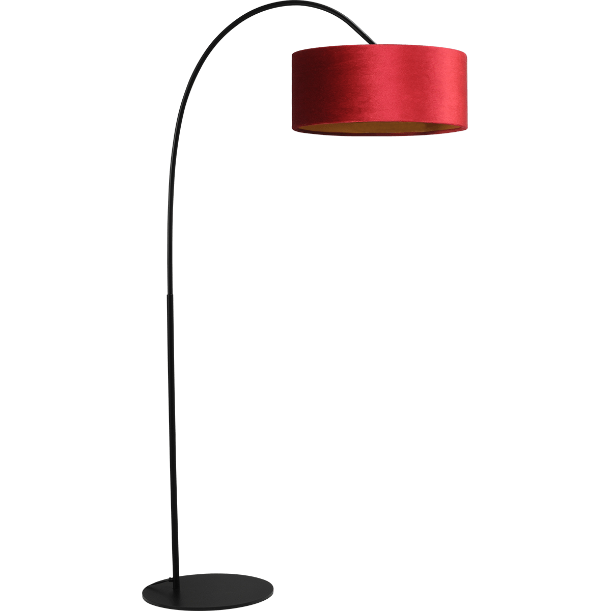 Vloerlamp Arch black, mat zwart, hoogte 183 cm, breedte 88 cm inclusief rode lampenkap, MASTERLIGHT