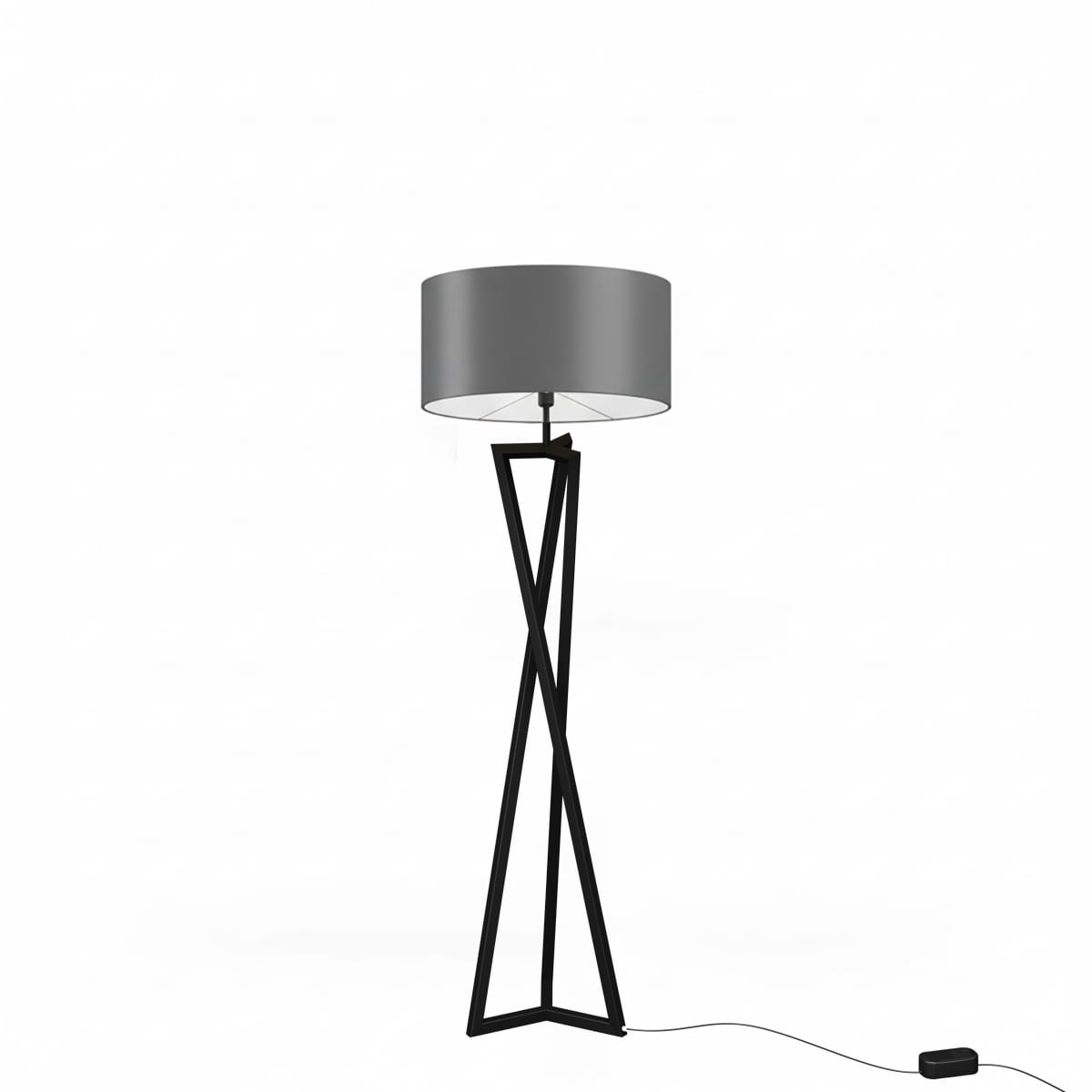 Vloerlamp Atrani 1250, stalen armatuur kleur Ral 9005, lampenkap Monaco Grey, ZTAHL