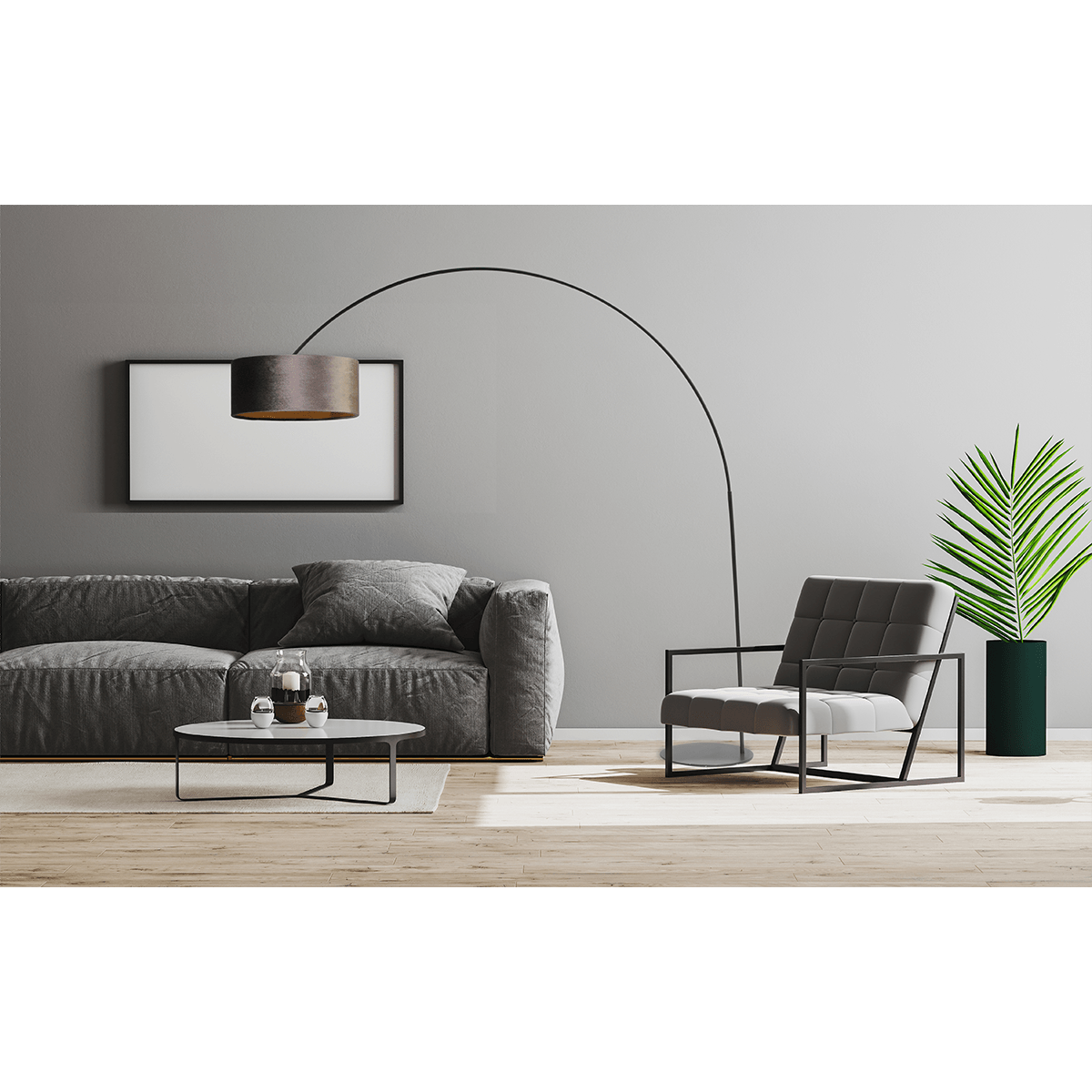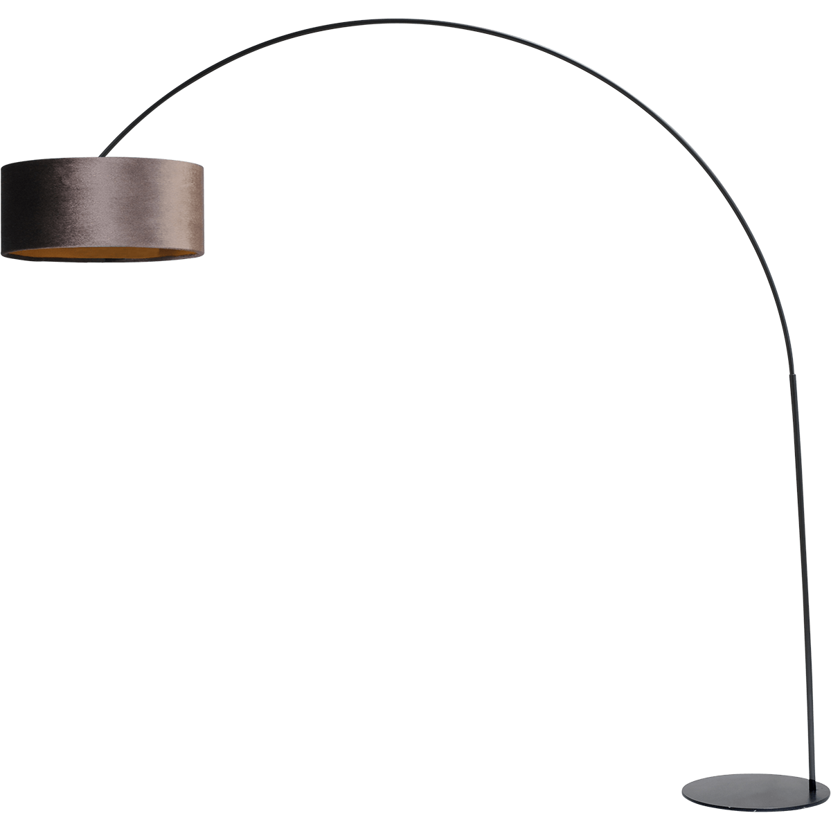 Vloerlamp, booglamp, Arch XXL matt black, mat zwart, hoogte 223 cm, breedte 217 cm, inclusief bruine lampenkap, MASTERLIGHT
