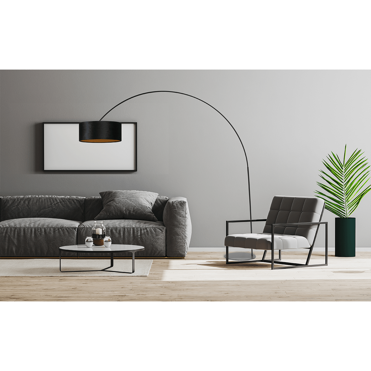 Vloerlamp, booglamp, Arch XXL matt black, mat zwart, hoogte 223 cm, breedte 217 cm, inclusief zwarte lampenkap, MASTERLIGHT