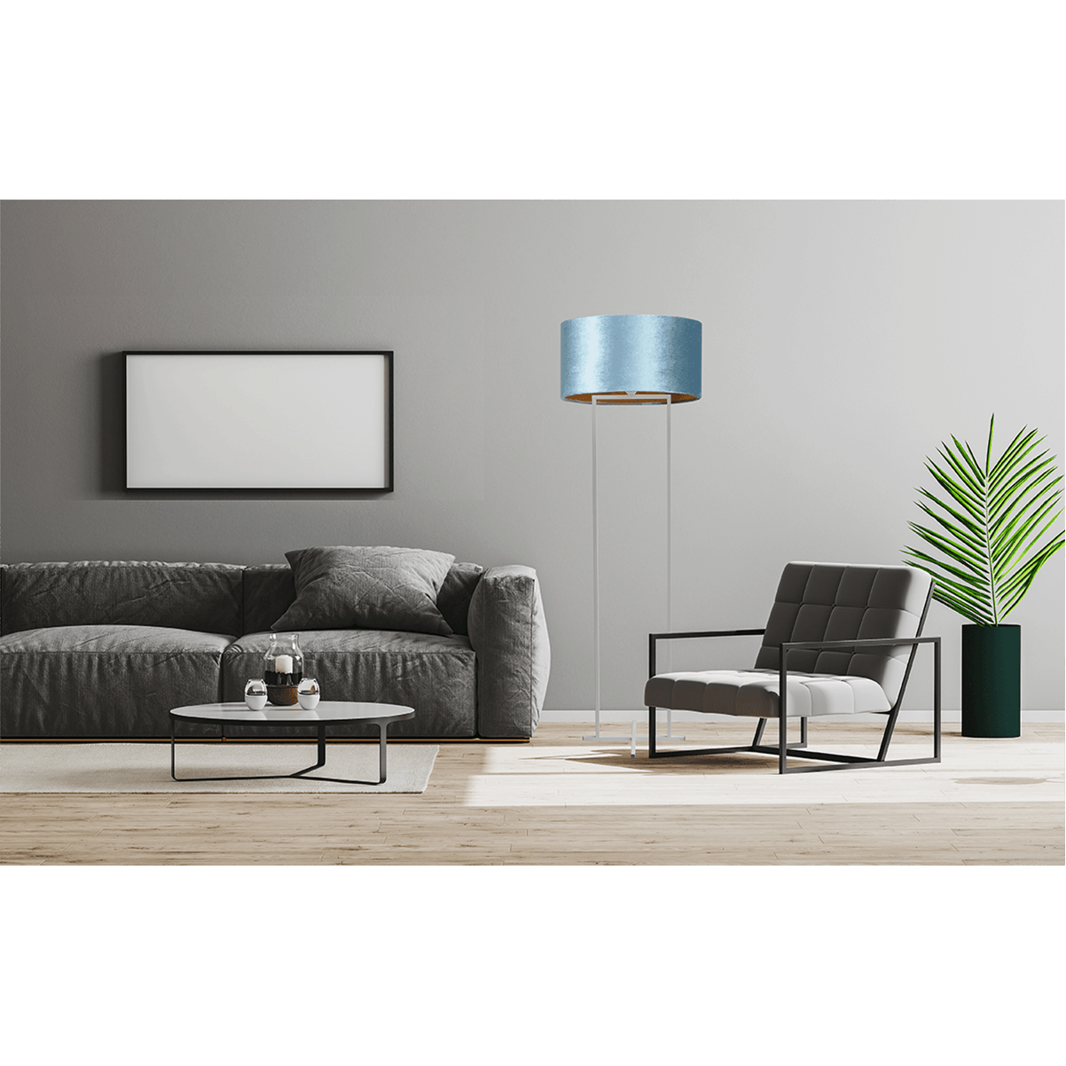 Vloerlamp Cross Rectangle artik rechthoek wit hoogte 158cm, inclusief blauwe lampenkap, Artik blue, MASTERLIGHT