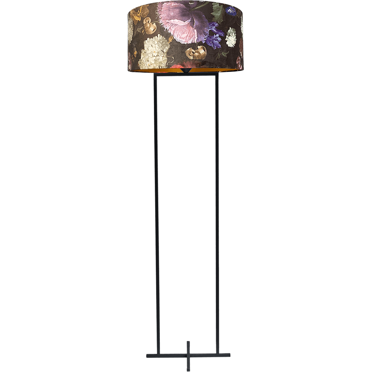 Vloerlamp Cross Rectangle zwart structuur hoogte 158cm inclusief lampenkap met flowerenprint Artik flower 52/52/25, MASTERLIGHT