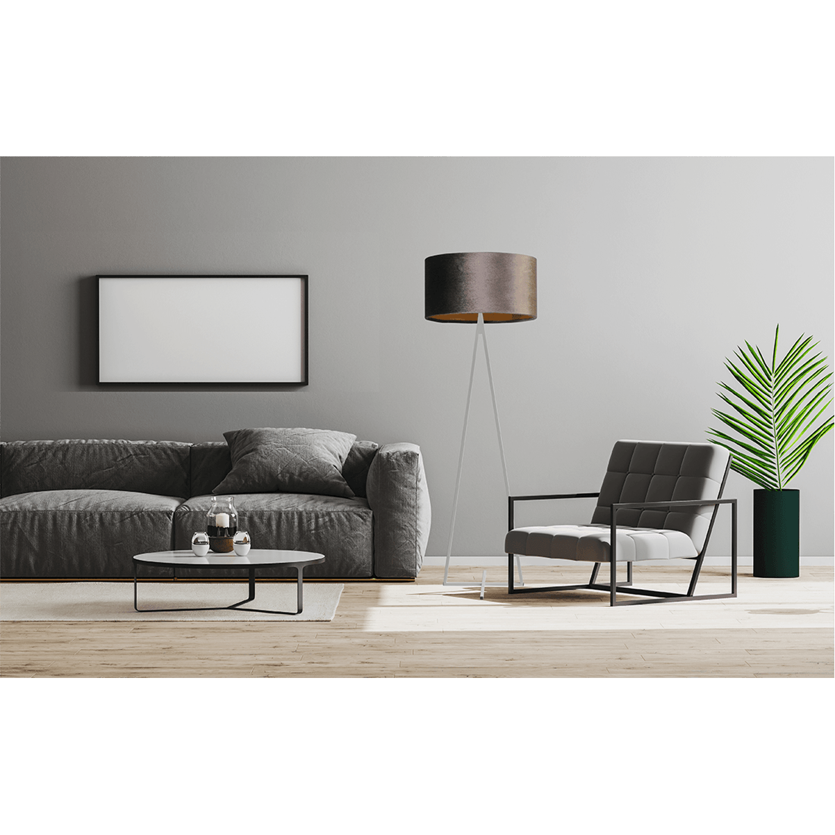 Vloerlamp Cross Triangle wit hoogte 158cm, inclusief bruine lampenkap, Artik brown, MASTERLIGHT