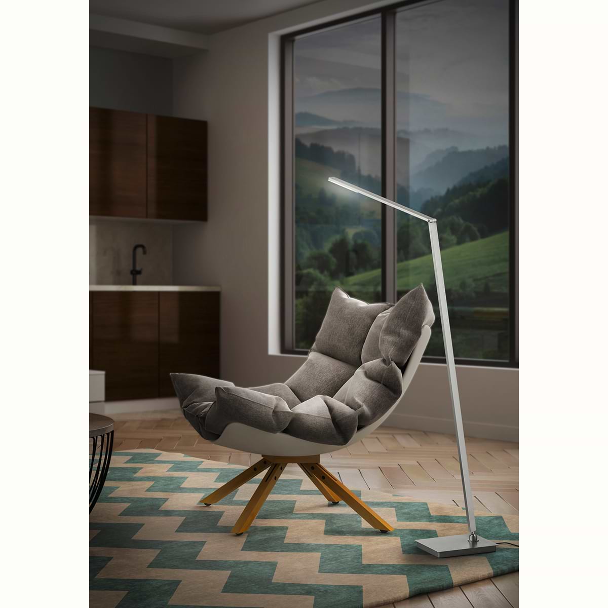 Vloerlamp, leeslamp. Serie: JULI-S. Kleur: nikkel mat. KNAPSTEIN
