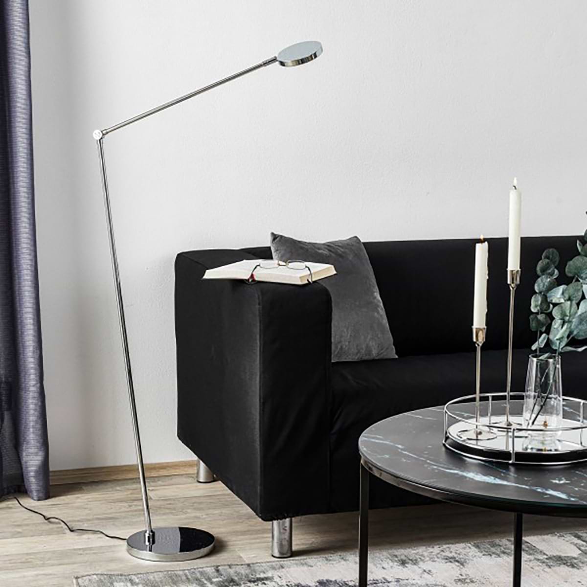 Vloerlamp, leeslamp. Serie: THEA-S. Kleur: chrome. KNAPSTEIN