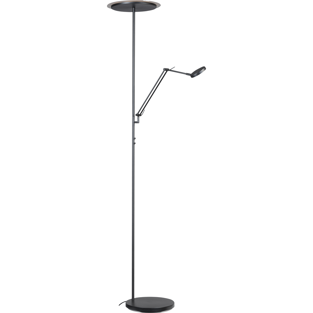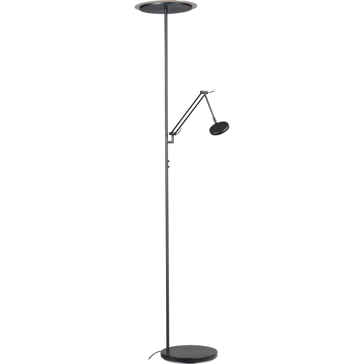 Vloerlamp Milan zwart nikkel uplight en leeslamp hoogte 185cm DTW, MASTERLIGHT