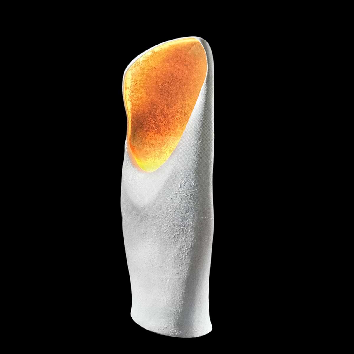 Vloerlamp Nature LB999/1VL-L-MW-GOLD. Keramische vloerlamp, mat wit van buiten en goudkleurig van binnen. Hoogte is 120 cm. – LECLERCQ & BOUWMAN