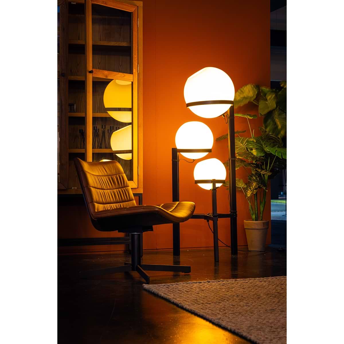 Vloerlamp Orb, armatuur zwart, glas opaal, hoogte 140 cm, 3-lichts, Expo Trading Holland