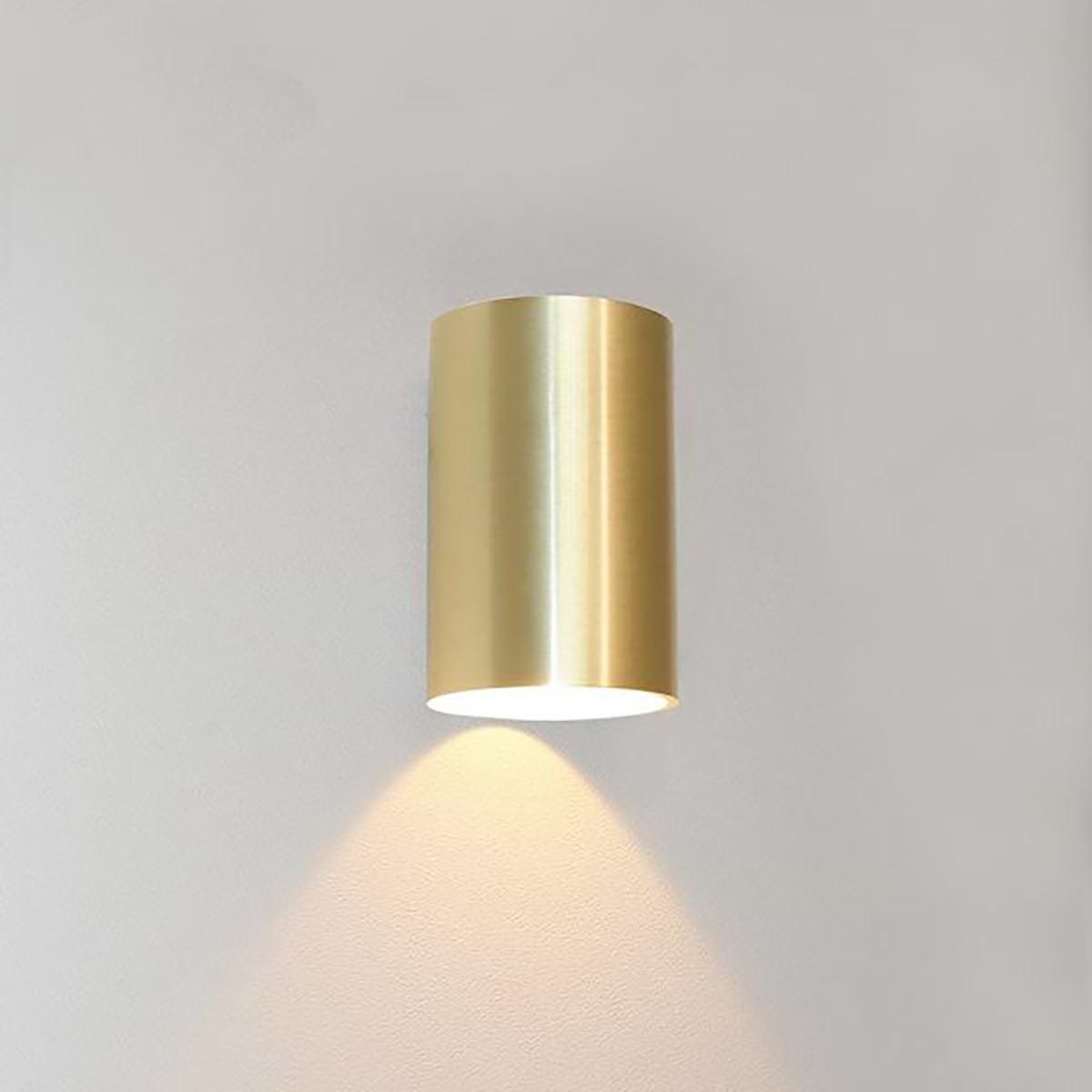 Wandlamp, badkamerlamp, goud geborsteld “Brody1” Ø7,2cm 11 cm hoog, LED 4W 2700K 360lm IP20, ART DELIGHT. Geïntegreerd LED. CRI 90, IP54, Klasse 1. Beschikbaar in aluminium, brons geborsteld geborsteld, bruin, goud geborsteld geborsteld, wit en zwart. De brons geborsteld en goud geborsteld geborstelde wandlampen zijn niet geschikt voor buiten. Als up of down te gebruiken. U kunt er dus zelf voor kiezen om het licht naar boven of naar beneden te laten schijnen. Wilt u én licht naar boven én licht naar beneden, neem dan de “Brody2”.