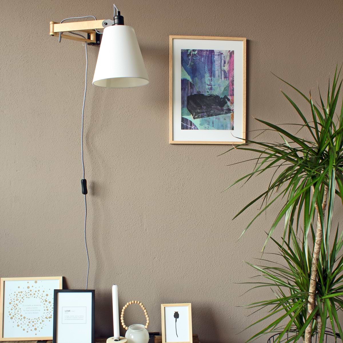 Wandlamp, Bureaulamp, Industrieel, 1-lichts. Zwenk Hout MEXLITE, STEINHAUER