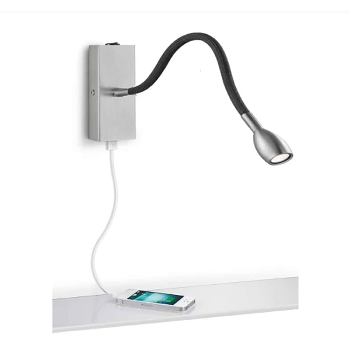 Wandlamp, leeslamp, 21.840.57, van de Duitse fabrikant Knapstein. Alle lampen van Knapstein zijn van zeer degelijke kwaliteit. Voor meer opties uit de serie: ASTA, kunt u de zoekfunctie gebruiken op onze site. Dan ziet u welke andere opties er binnen de serie zijn. Kleur: nikkel mat – Kleur: zwart. Aantal lichtpunten: 1. Lichtbron: inclusief. Breedte in mm: 55. Lengte/diepte in mm: 425. Met aan/uit schakelaar op het armatuur en met USB voor het laden van een telefoon of tablet.