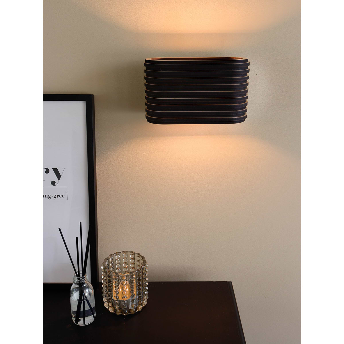 Wandlamp, Oval, 20cm, Zwart hout, BLIJ DESIGN, G9