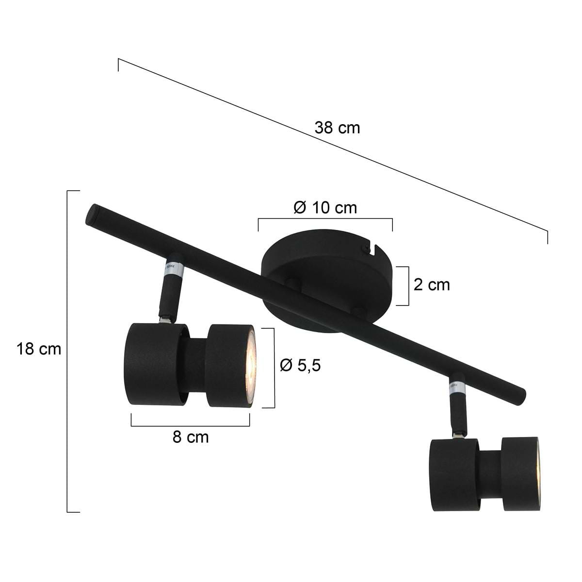 Wandspot of plafondspot 2-lichts LED, zwart, Natasja LED, Steinhauer
